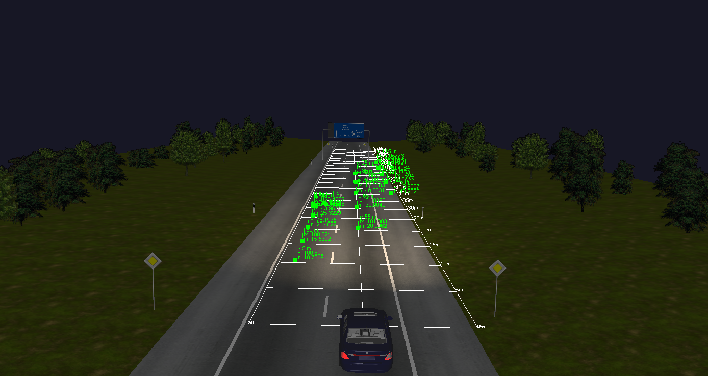LucidDrive simulates pixel light technology by detecting oncoming or overtaking traffic, and calculating bounding boxes. Defining a dimming matrix to quickly configure pixel light distributions. The sensor allows storage of dynamic light distribution and dimming matrix for each frame.