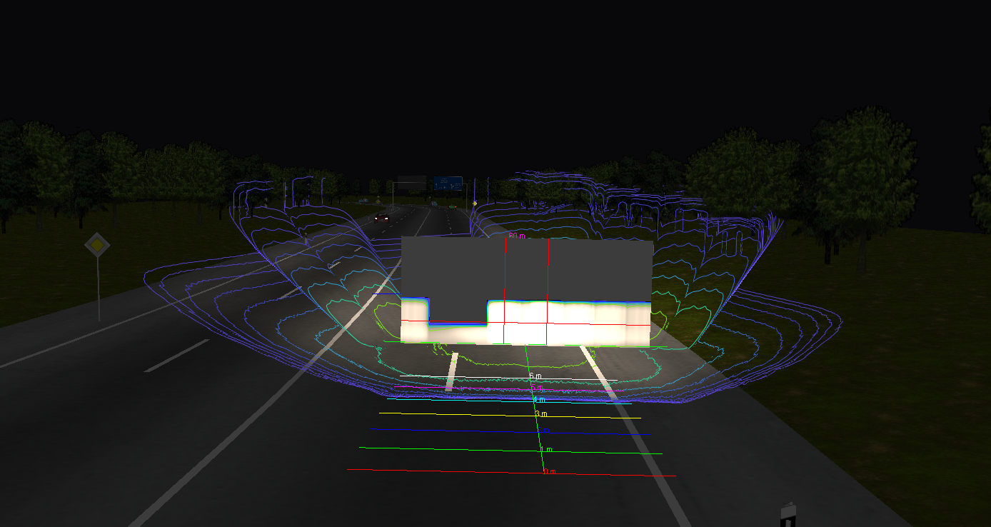 This feature helps compare multiple headlamp beam patterns simultaneously. It enables to determine the most optimal light distribution when different design configurations are being tested. For spectrally generated intensity distribution (.LID/.IES), it is possible to view colour dispersion effects. It also offers different view positions such as the driver’s view, bird’s eye view, drone and pedestrian view which helps visualize the extent of the beam footprint over a large area.
