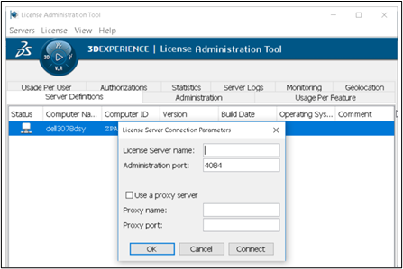 - Connect to the license server using its hostname/IP and default port (4085 unless modified).