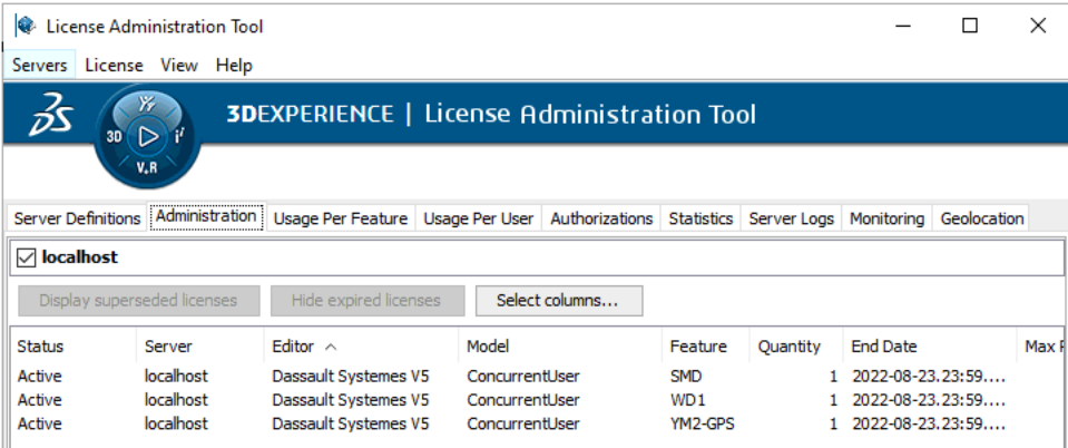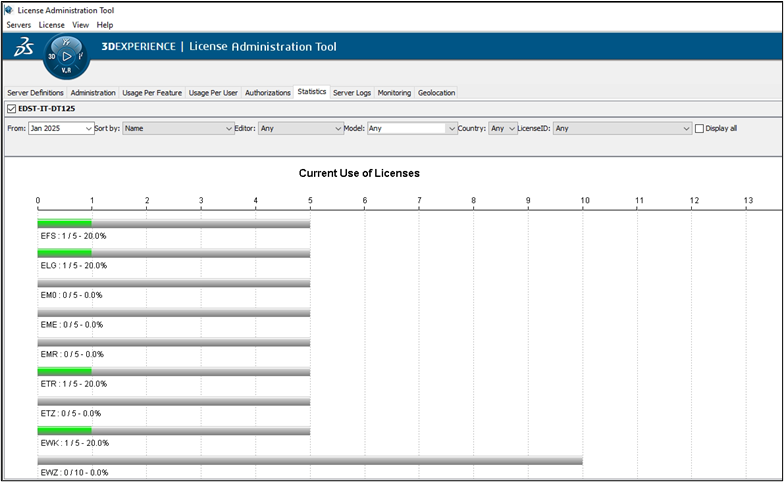 Dassault Systemes provides both GUI and CLI-based tools to visualize and extract usage data.